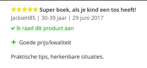 'Ik zal vele ouders aanraden (een deel van) dit boek te lezen. Ouders hebben behoefte aan herkenning en laagdrempelige adviezen. Ook adviseer ik iedere professional die met kinderen of volwassenen met een TOS werkt dit boek te lezen. Het geeft vanuit een heel andere hoek dan de meeste theoretische boeken een kijk in de wereld van de ouder en de cliënt, wat zeer waardevol is om mee te nemen in de behandeling en begeleiding van de cliënten en hun ouders.'